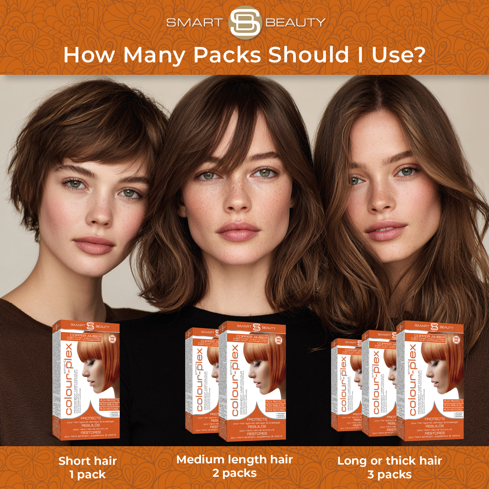 Smart Beauty deep amber permanent hair dye kit is the perfect copper brown to bring life to brown hair.