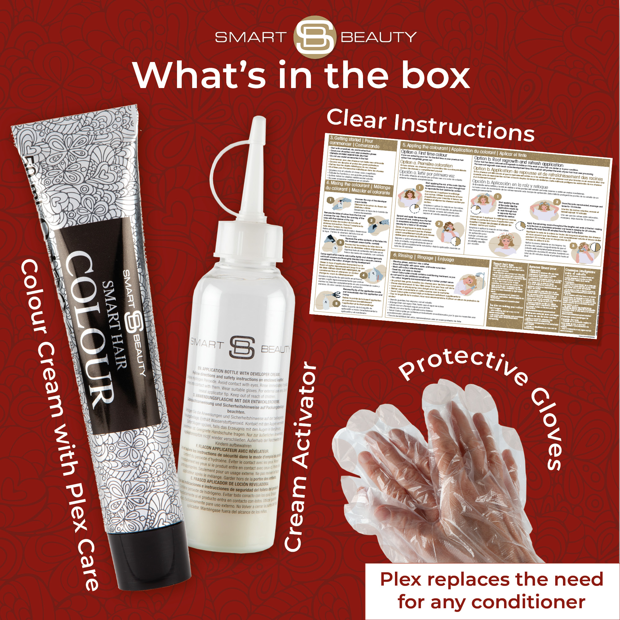 50ml Colourant, 75ml developing lotion, gloves, and instructions. Smart Beauty products are made in the EU. Order before 3 pm (excludes weekends) – for next-day delivery. Not available in UK high street stores, buy Online only.